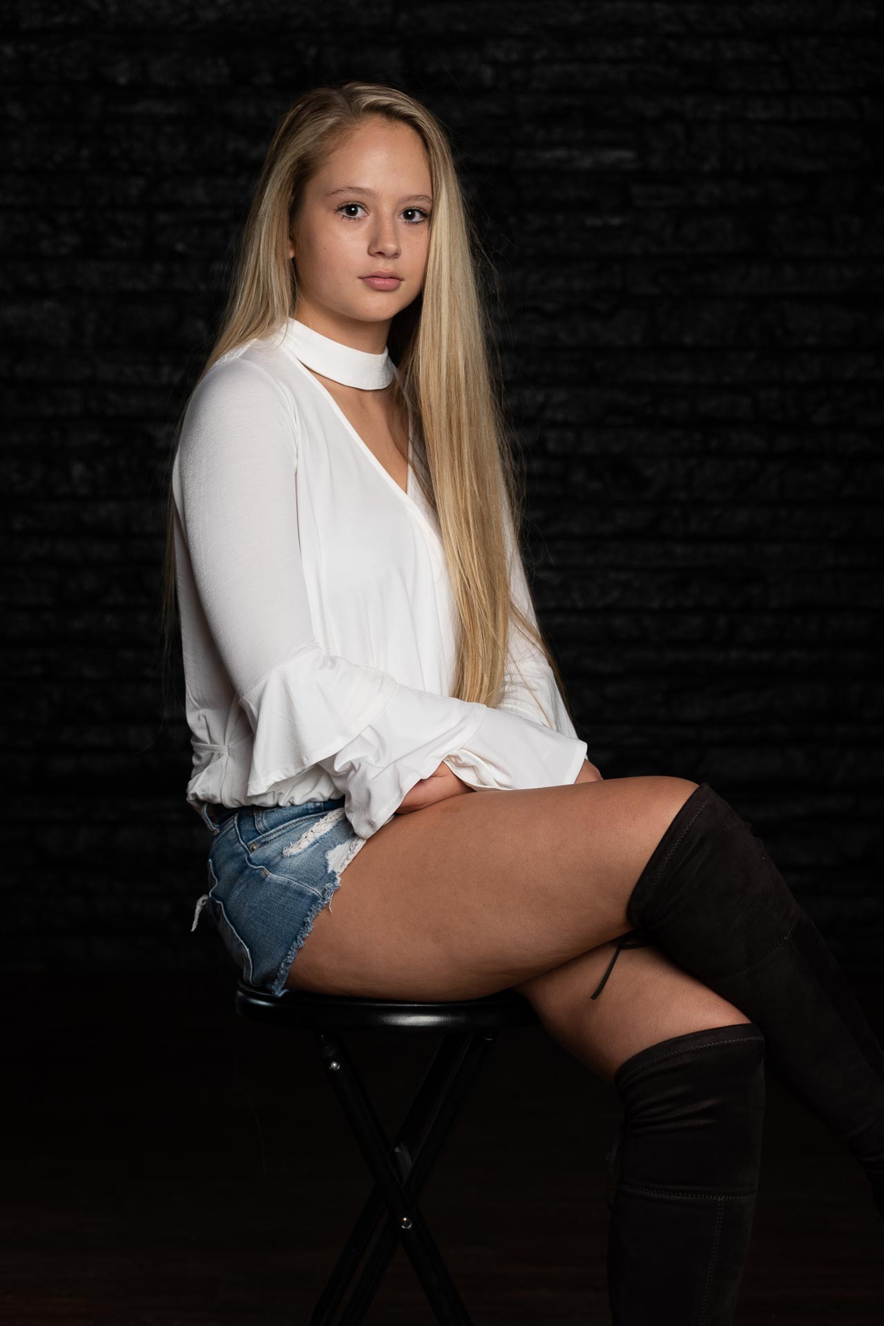 One wall was black. The previous tenants had painted the front wall – which happens to be stone – with a glossy, black, latex paint. It would have been a HUGE pain in the butt to repaint it with a matte paint. As I started experimenting with the light in the space, though, I really started liking the look of the black brick as a signature look for the studio. It’s a pretty unique background, and it’s fairly consistent with the look I like, so we kept it.